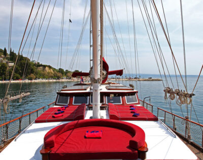 Complete galley equipment, Dinghy including outboard 50 PS (for waterski), Engine: 2 x 110 PS, Hydr. bathing platform, Liferaft & Security equipment, Radio/MP3, Rollstaysail, Seabob F5S, Stand Up Paddle, Top Sunbed