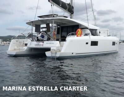Triradial Hydranet mainsail fullbattened (55 m2), Triradial Hydranet roll jib (42 m2), gennaker (150 m2) with sock, lazy bag and lazy jack