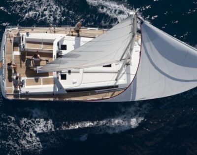 BBQ-Gas operated in the cockpit with sink, Plug 220V/12V, Boat documents, Pillows & Pillow-cases, Blankets, Bed Sheets, Convertible saloon table, Towels (2 per person), Registered for 12 pax, Electric fans in cabins, Gas Oven, LED navigation lights, Freshwater circuit with shore power, Battery charger 25A, Double windlass control with chain counter, 220V + shore power + outlets in cabins and saloon, Blinds with mosquito net, Electric windlass 1400W remote-controlled, LED interior lights + indirect lights, Galley equipment, Wooden wine cellar, Rigid boom Vang, Mooring ropes, Stainless steel bathing ladder, Cockpit shower (cold & hot), Cockpit seats covered in natural teak, Outboard engine (3.5x), Stainless steel bow protection, Anchor Type (DELTA 20kg), Fixed bowsprit, Automatic shower pump, Leather-covered steering wheels, Life-line ladder, Box of flares, Chart plotter, Floating light, List of lights, Divider, Stern-thruster, Bow-thruster, Navigation set, Shower, Sun-shades, Galley fully equipped, Dinghy type (Plastimo with Hull), People (4-5), Outboard type (Mercury), Repair kit, Toolbox, Teak cockpit