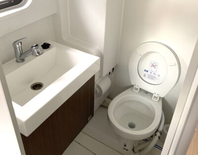 Berth in port bow comp. (1x), Convertible table in the saloon, Dinghy with davits, Fans in cabins/saloon, Horseshoe Buoy, Hydraulic gangway, Outboard, Pax onboard (max) (11x), Snorkeling equipment (4x), USB sockets in cabins (null), Wooden cockpit