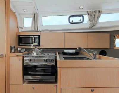Fridge, Converter to 220 V, Socket 220 volt, Socket 12 volt, Gas stove, Hot water, Gas bottle, Ice maker, Coffee machine, Galley, Music system,