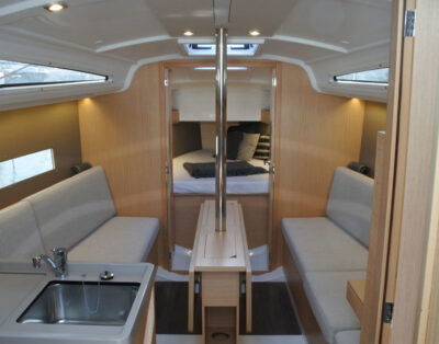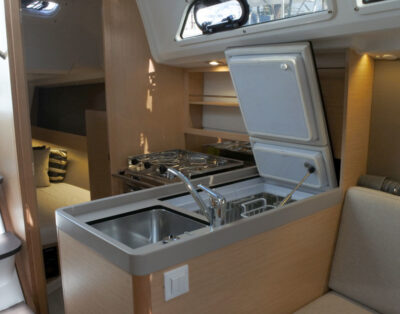 Fully equipped with all neccesary to spend a complete week on board. Fully kitchen U Shaped for more confort, oven, microwave. Saloon with panoramic views, a lot of light and space. Four double cabins with lateral access to double beds, all with ensuite bathroom. Cockpit with large dinning table and lounge zone in front. Sun deck cushions in roof. Water maker 2 x Stand Up Paddle and snorkel gear Skipper cabin with independent toilet