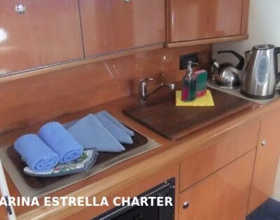 GPS / Plotter / Bimini top / Deck shower / Radio-CD / Fridge / Teak deck.